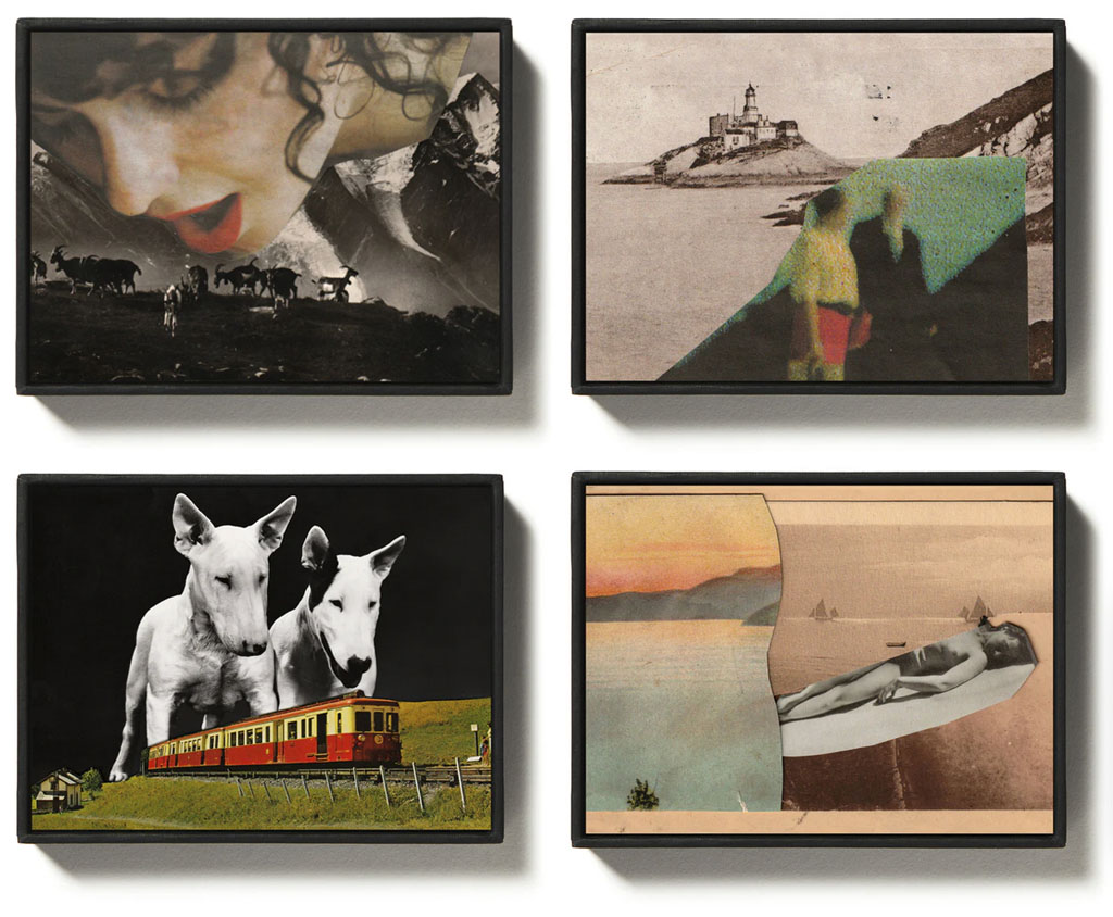 Collages édités par la Petite Œuvre d'Art. La collection PODA propose des œuvres originales dans un format inédit de 9x12 cm, encadrées et disponibles à un prix abordable de 49 euros. Chaque tirage original est présenté dans une boite qui fait le cadre, prêt à poser ou à exposer. PODA